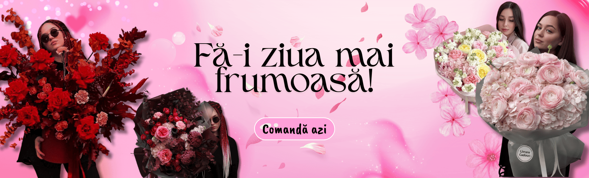 Intră pe pagina de surprize și explorează zeci de opțiuni pentru toate gusturile și ocaziile. De la buchete de flori spectaculoase până la torturi, baloane și cadouri personalizate, ai tot ce îți trebuie pentru o livrare memorabilă.
