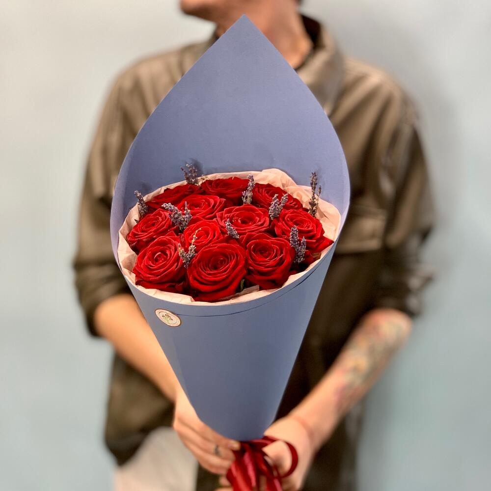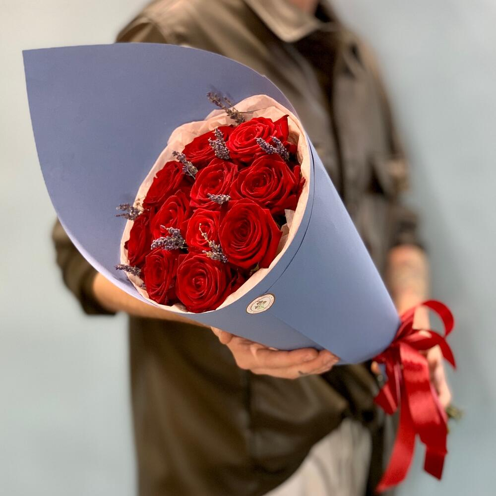 Buchet din Trandafiri Roșii cu Lavandă