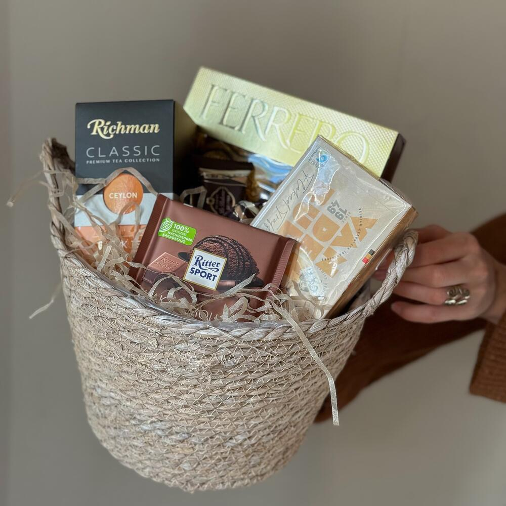 Coș Cadou de Anul Nou cu Ceai și Ciocolată