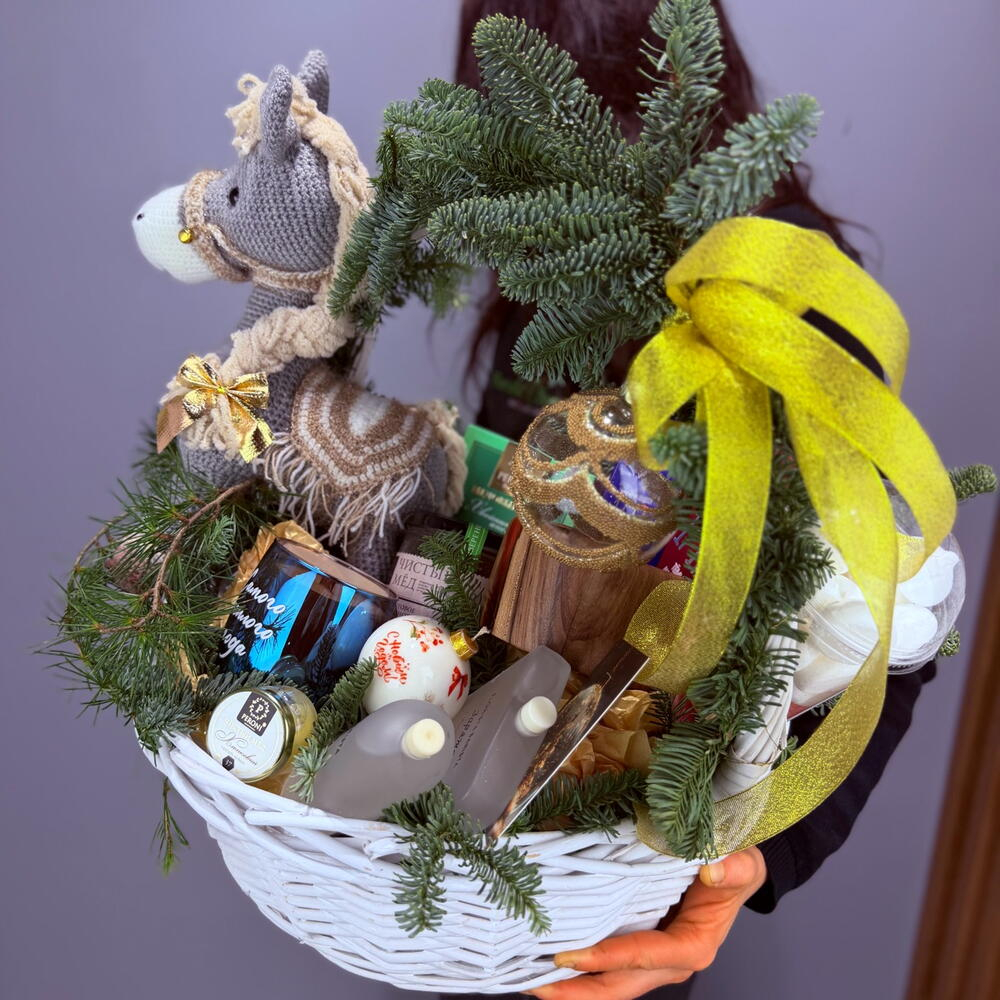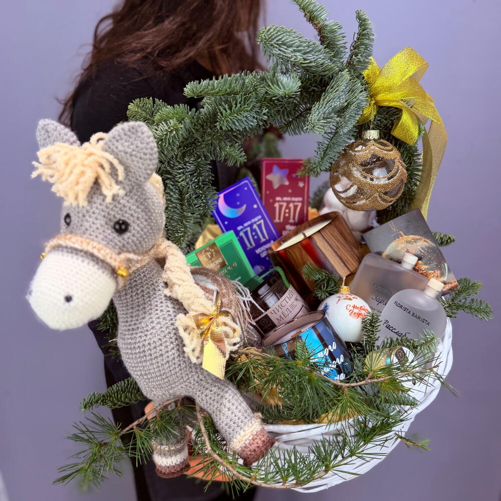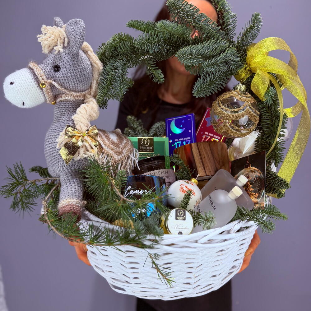Coș Cadou Luxos cu Parfumuri, Dulciuri și Jucării „Simbolul Anului”